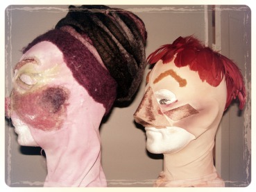 C’est ça Funérailles d’Hiver… Alors, allons-y gaiement… les comédiens seront masqués, un univers de chiffon, de poupées, de pantins, des «mini-moi » symbolisant les âmes, des portes qui ne sont pas des portes, un Himalaya qui n’en est pas un… Un univers onirique qui se coltine au trash de ces 2 familles, à une langue vive et sans concession, une rencontre entre la poésie et la réalité d’une société où l’égoïsme règne en mâitre absolu.