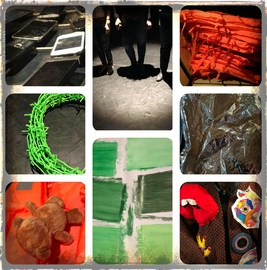 Il nous semble important de faire une présentation / opposition de ces deux mondes : les migrants (en tant qu’entité, masse, collectif sans singularité) et les autres, ceux qui sont autour, qui prennent sans scrupule tout ce qu’ils peuvent prendre des migrants, les " V-autours." Le texte donne la parole à ces " V-autours " – très peu, voire pas, aux migrants – et à leur manipulation. Notre société manipule ce sujet… Nous souhaitons donc opposer sur scène ces profiteurs à ces gens perdus : les uns seront principalement habillés de gris, les autres seront masqués et colorés (comme des mannequins ou des marionnettes interchangeables, comme des objets, manipulés par les autres).